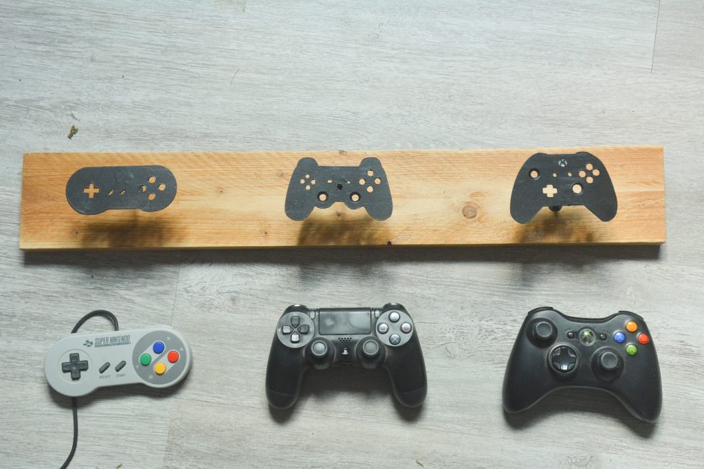 Porte manteau reprenant les courbes des manettes emblématiques de différents constructeurs.