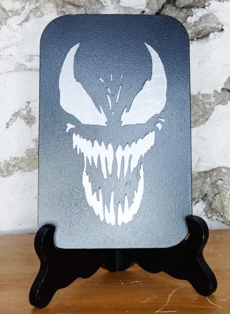 Venom sur plaque en acier gravé à la main.