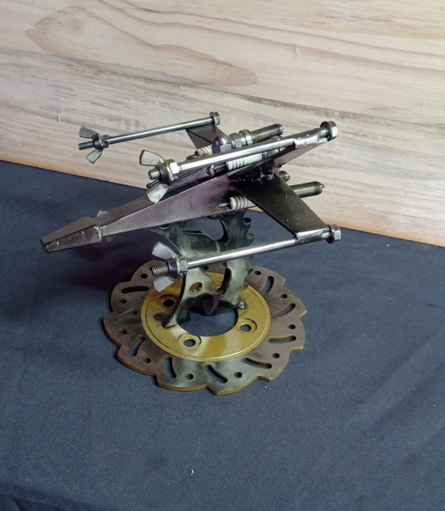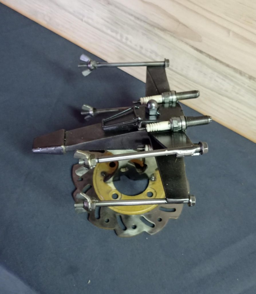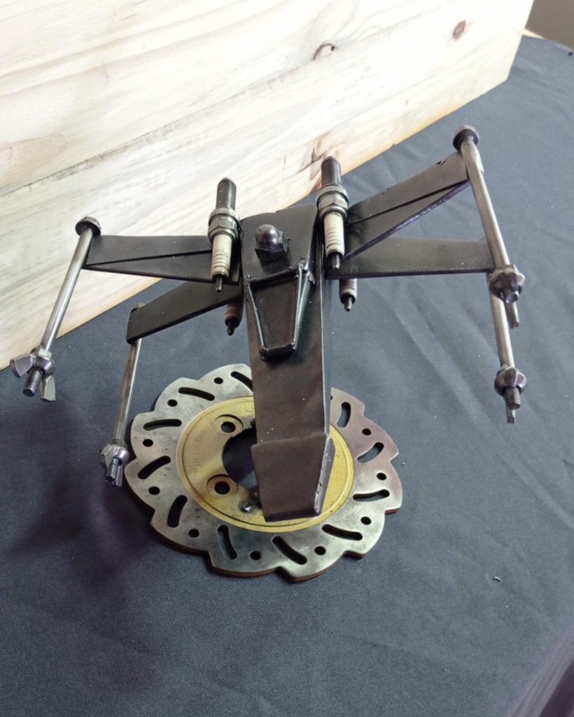 Un X-wing de la saga Star Wars entièrement fait avec des pièces de récupération.